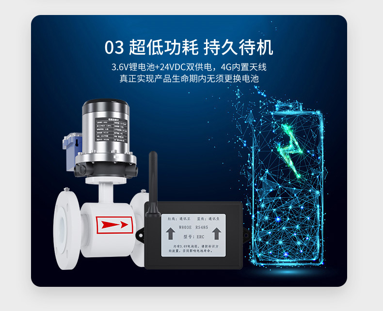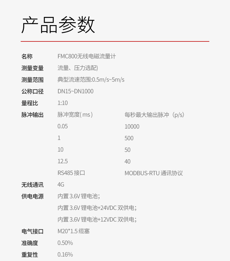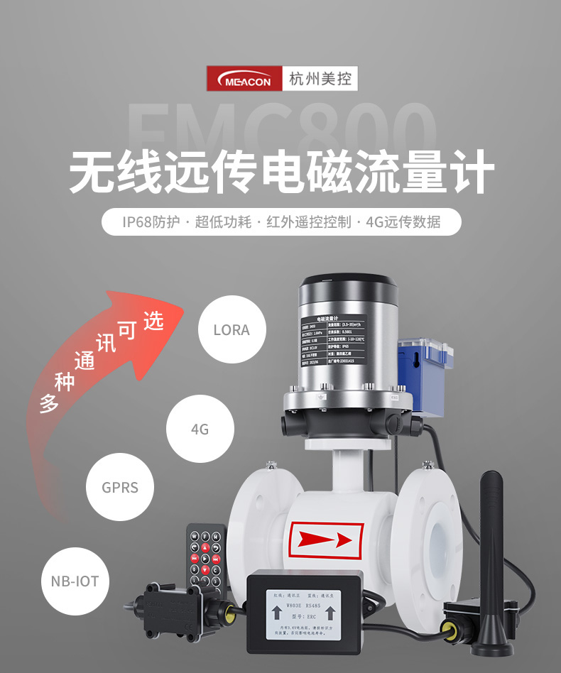 welcome海洋之神_FMC800无线电磁流量计由电磁流量计和 4G 无线远传模块共同组成,用于测量封闭管道内导电液体的瞬时流量和累积流量。测量数据通过 4G 信号远传至网络接收平台,用户可以通过浏览器、微信公众号等方式灵活方便地查看数据、远程配置参数等功能,实现智能物联。广泛应用于自来水、化工、煤炭、环保、轻纺、冶金、造纸等行业。 流量转换器为电池供电型转换器,标配一个常规锂电池组,可持续工作 3~6 年。若配用高容量锂电池组,工作时间会更长。