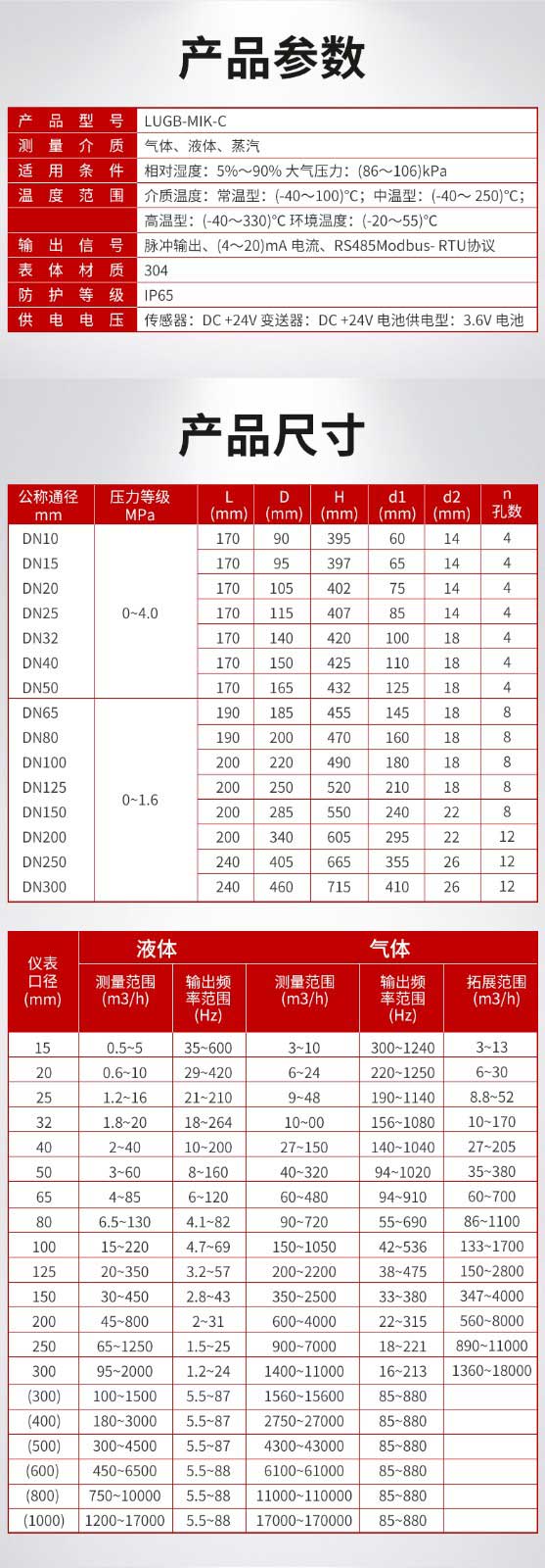 LUGB-MIK-C 经济款 智能抗振涡街流量计/高温蒸汽流量计