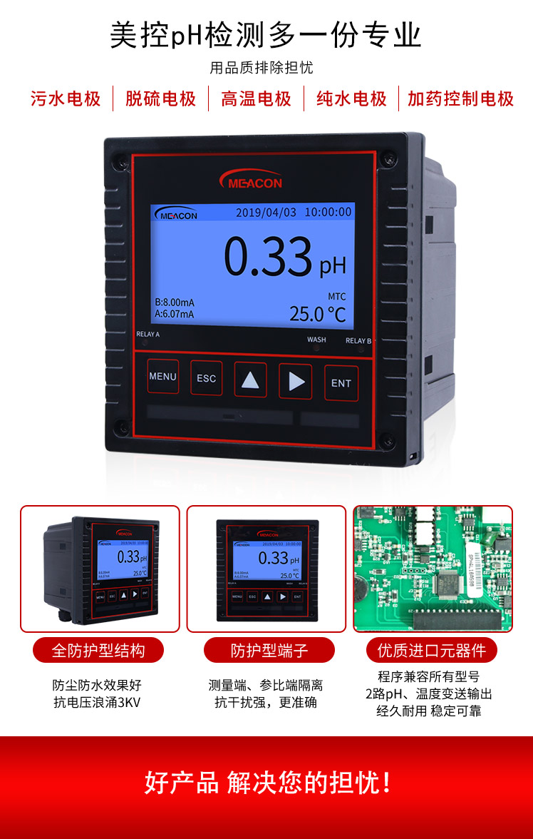 本产品是在线pH/orp控制器广泛应用于火电、化工化肥、冶金、环保、制药、生化、食品和自来水等溶液中PH值或ORP值的连续监测。