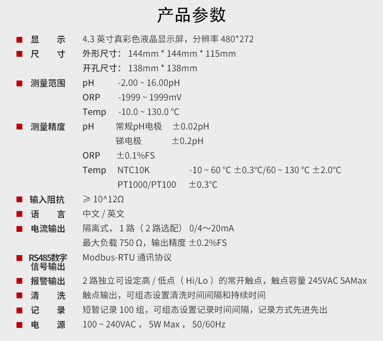 本产品是一款智能在线水质分析仪表,用于在线监测pH/ORP值的控制器